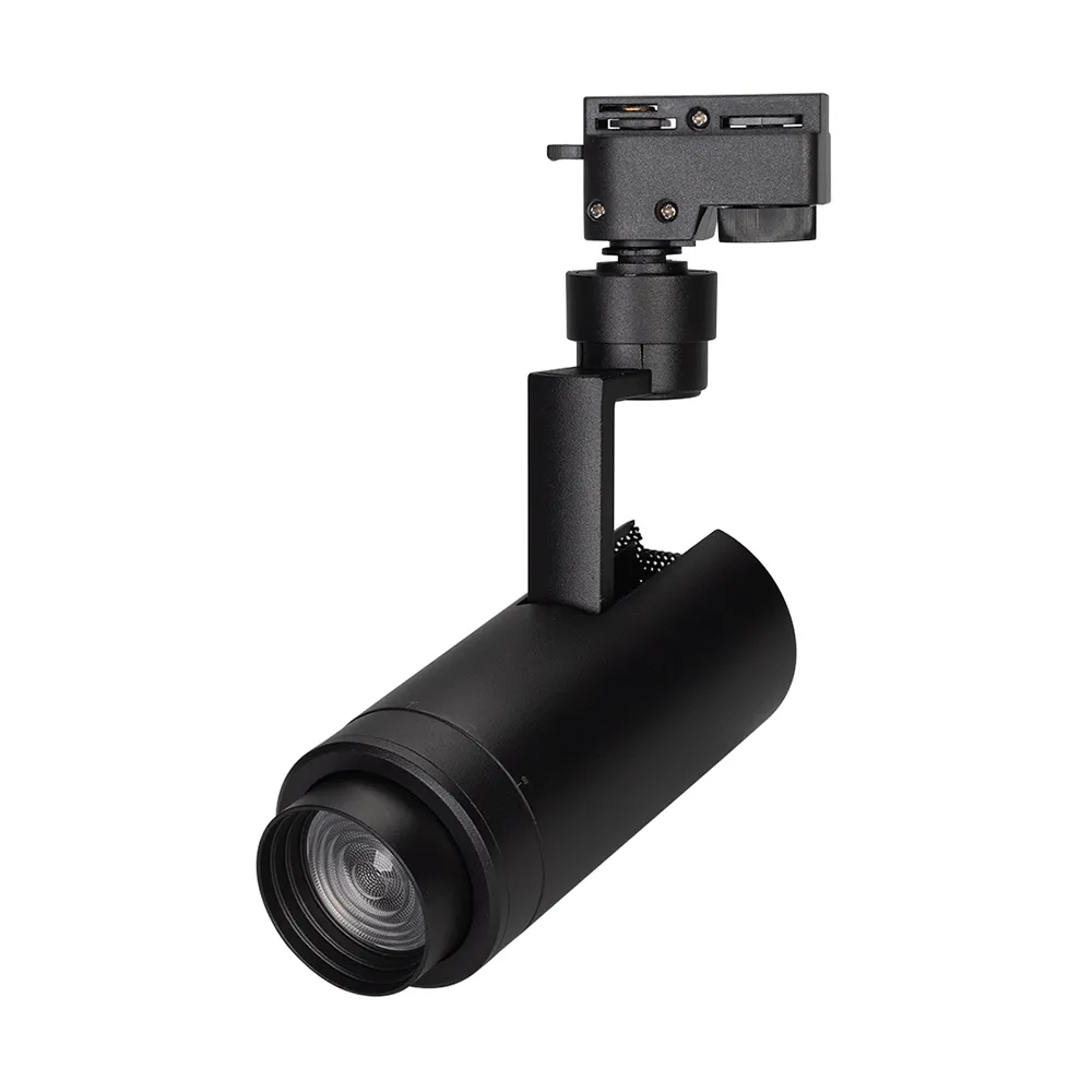 Светильник подвесной для треков/шин 2 провода, 10Вт. Цвет свечения ДНЕВНОЙ 4000K, световой поток 800-1000лм, регулируемый угол 20-60°, CRI>90. Корпус круглый, металл, цвет черный. Размеры DxHxL Ø67x180x155мм. Входное напряжение AC220-240V, мощность 10Вт. Драйвер встроенный (27-38V, 260mA).