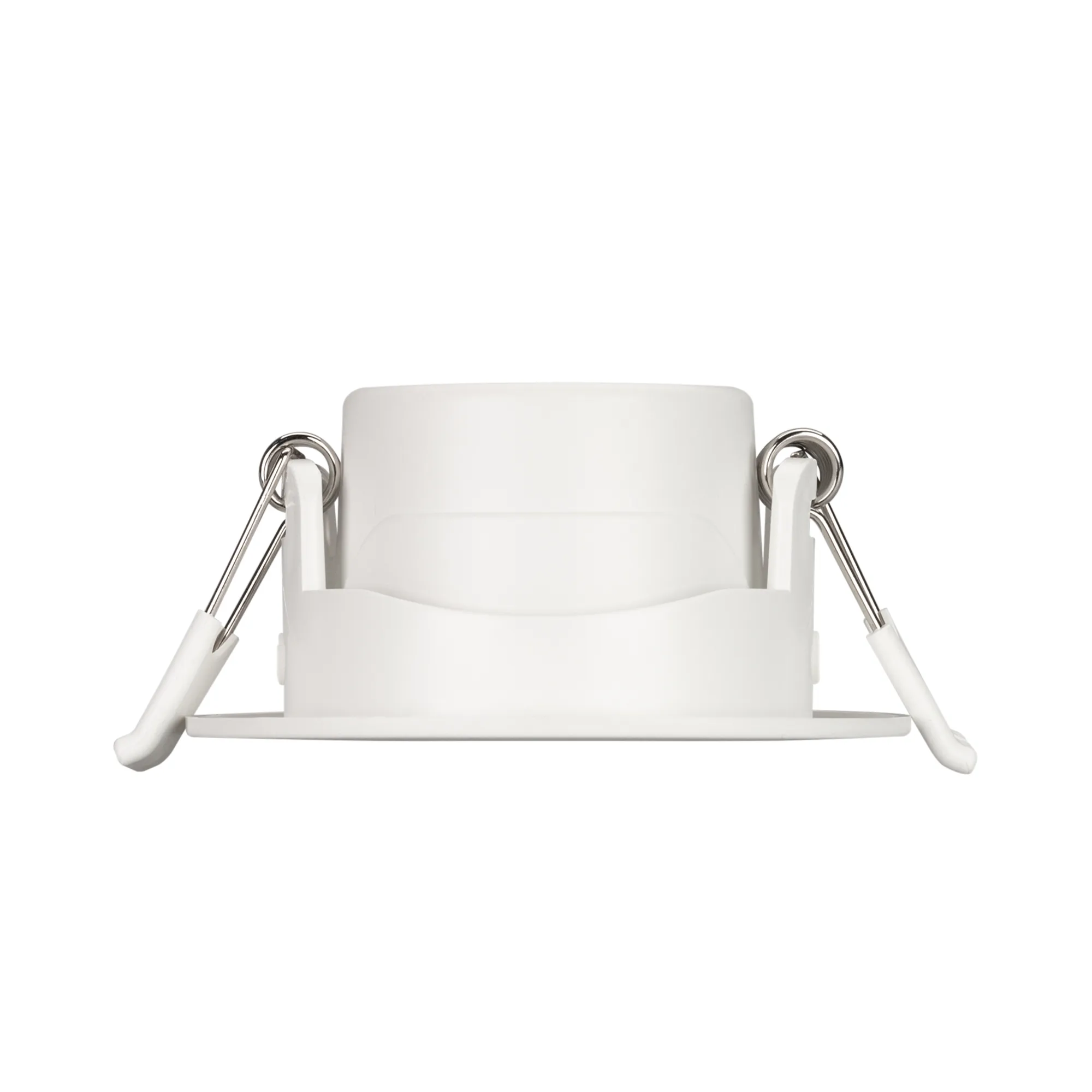 Встраиваемый поворотный светильник "даунлайт". Мощность 4.5 Вт, св. поток 400 лм, 89 лм/Вт, дневной 4000 K, CRI>80, UGR<19, угол 36°, напряжение питания 230 В. Белый круглый корпус из теплопроводящего полиамида, экран пластик, степень защиты IP20, угол поворота оси 30°. Размер: диаметр 80 мм, высота 37.5 мм. Монтаж встраиваемый, установочное отверстие диаметр 60-70 мм. Пульсация <2%.