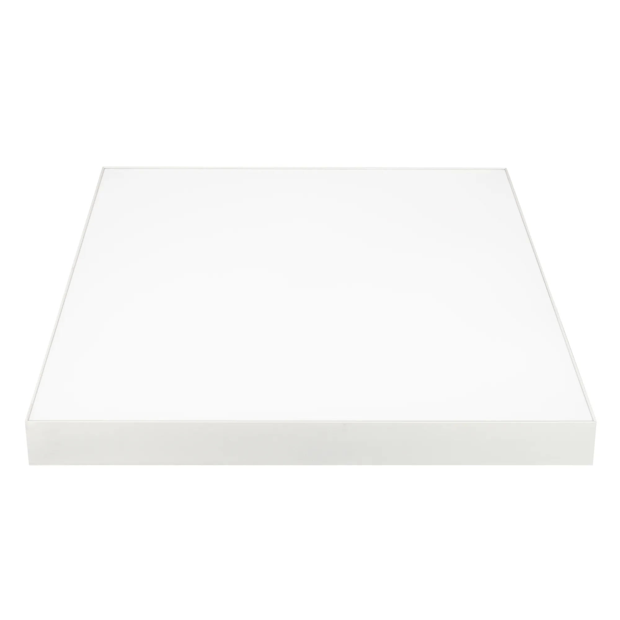 Поставка под заказ от 100 шт. Накладной светильник. Мощность 60 Вт, св. поток 4900-5500 лм, 80-90 лм/Вт, дневной 4000 K, CRI>90, угол 120°, напряжение питания 230 В. Белый квадратный корпус из алюминия, экран PC, степень защиты IP40. Размер: длина 600 мм, ширина 600 мм, высота 64 мм. Монтаж накладной. Драйвер 27-40 В, 1400 мА, пульсация <5%.