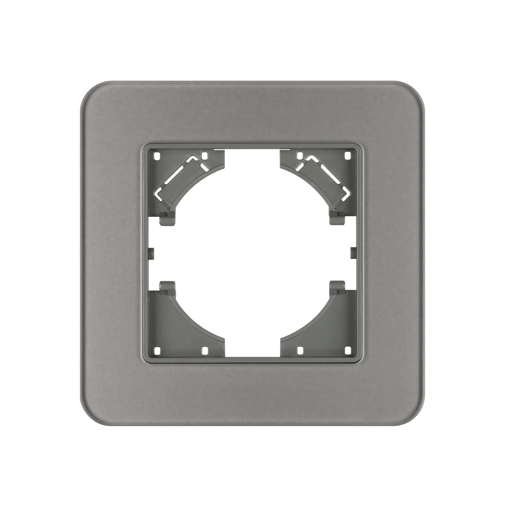 Рамка стеклянная на 1 пост, под встраиваемый механизм. Цвет - серый с Soft-Touch покрытием. Уровень герметичности IP20. Ориентация монтажа - горизонтальная (основным ориентиром служат посадочные выступы для накладки механизма).