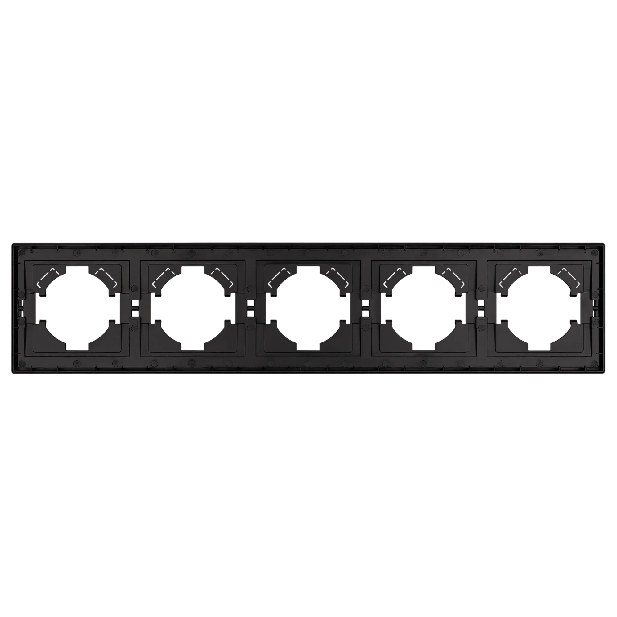 Рамка пластиковая на 5 постов, под встраиваемый механизм. Цвет - матовый графитовый, с Soft-Touch покрытием. Уровень герметичности IP20. Ориентация монтажа горизонтальная.
